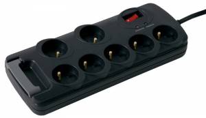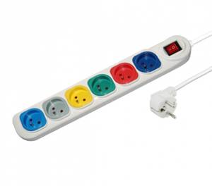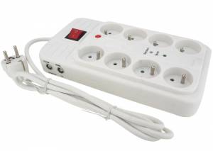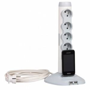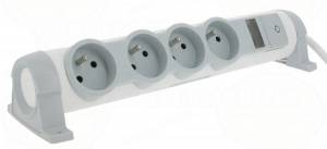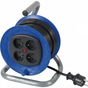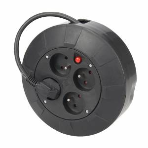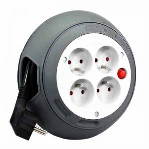 - Enrouleur de rallonge française à 4 prises type E, prises CEE 7/5 et fiche CEE 7/7.