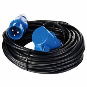 - Rallonge secteur 25 M avec 2 fiches P17, une mâle 16 A et une femelle 16 A avec couvercle. Rallonge électrique pour camping car et caravane, conforme aux nouvelles normes CE.